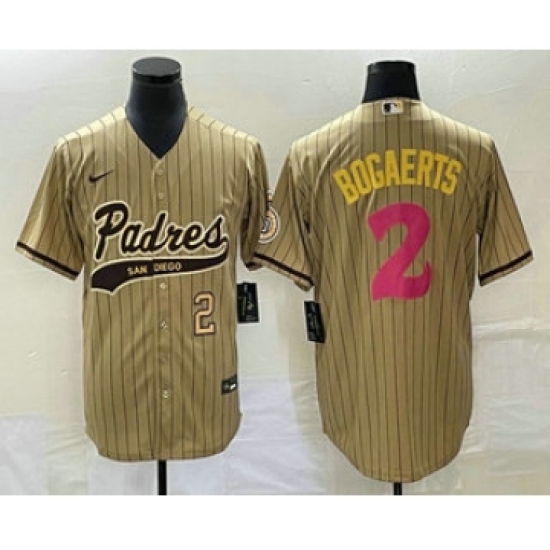 Men's San Diego Padres #2 Xander Bogaerts Number Tan Pinstripe 2023 City Connect Cool Base Stitched Jersey