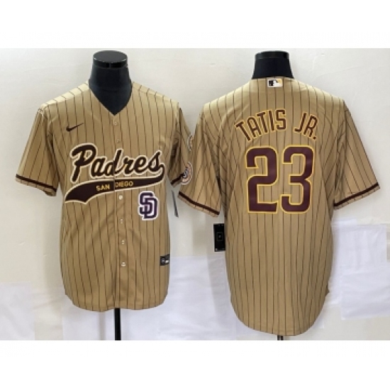 >Men's San Diego Padres #23 Fernando Tatis Jr Tan NEW 2023 Cool Base Stitched Jersey