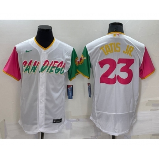 Men's San Diego Padres #23 Fernando Tatis Jr White 2022 City Connect Flex Base Stitched Jersey