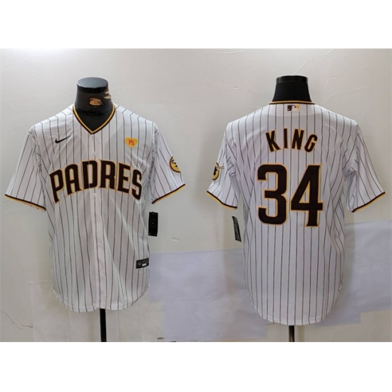 >Men's San Diego Padres #34 Michael King White With PS Cool Base Stitched Baseball Jersey