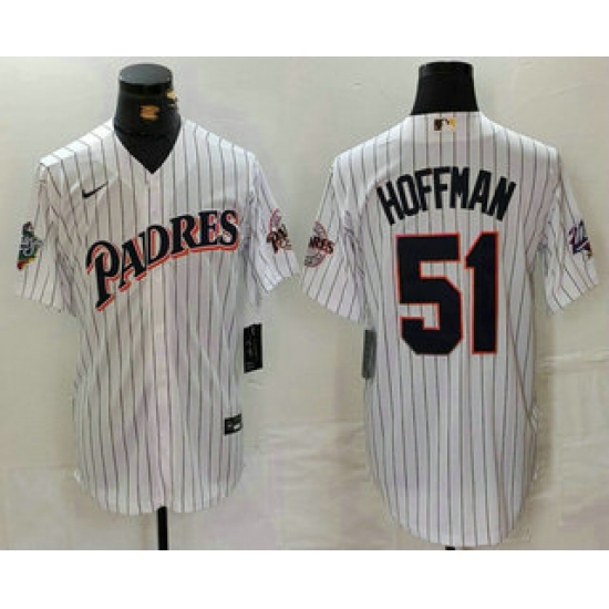 >Men's San Diego Padres #51 Trevor Hoffman White Pinstripe Nike Jersey