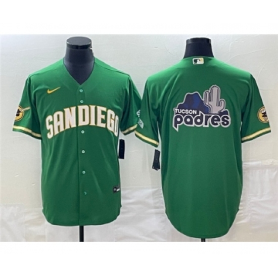 Men's San Diego Padres Green Team Big Logo Cool Base Stitched Baseball Jersey 002