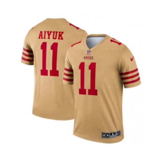 Men's San Francisco 49ers #11 Brandon Aiyuk 2022 New Gold Inverted Legend Stitched Football Jersey