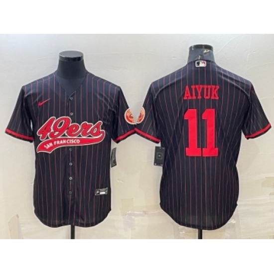 Men's San Francisco 49ers #11 Brandon Aiyuk Black Pinstripe With Patch Cool Base Stitched Baseball Jersey