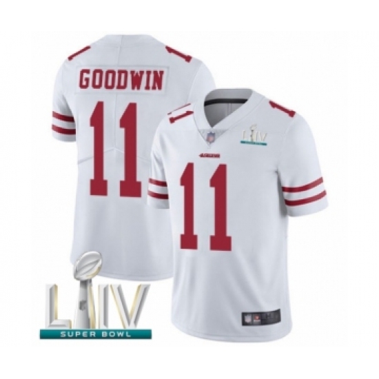 >Men's San Francisco 49ers #11 Marquise Goodwin White Vapor Untouchable Limited Player Super Bowl LIV Bound Football Jersey