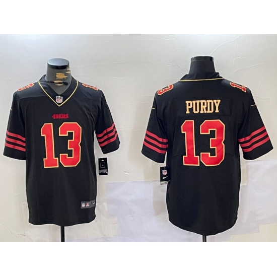 Men's San Francisco 49ers #13 Brock Purdy Black Gold With 75th Anniversary Stitched Jersey