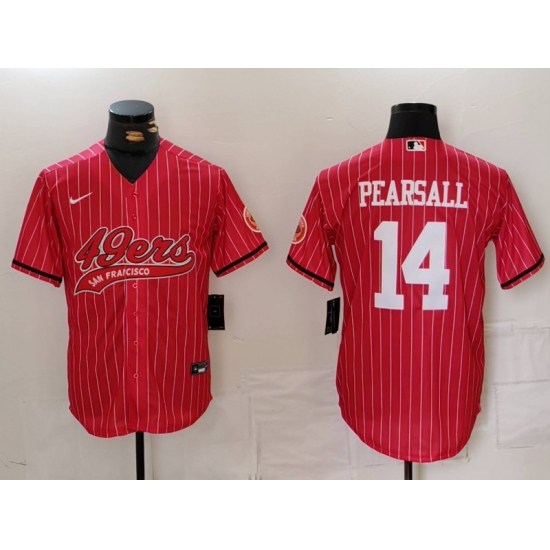 >Men's San Francisco 49ers #14 Ricky Pearsall Red Pinstripe With Cool Base Stitched Baseball Jersey