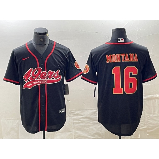 Men's San Francisco 49ers #16 Joe Montana Black Red With Cool Base Stitched Baseball Jersey