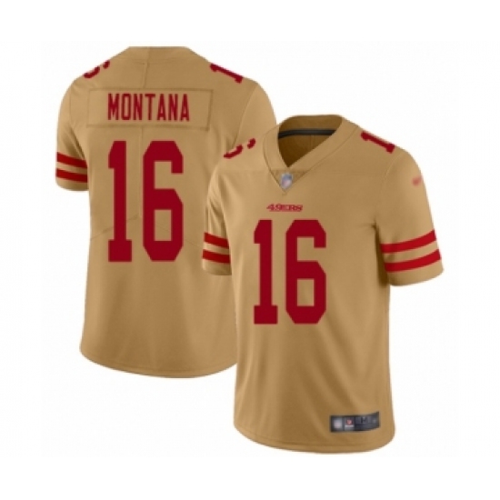 Men's San Francisco 49ers #16 Joe Montana Limited Gold Inverted Legend Football Jersey