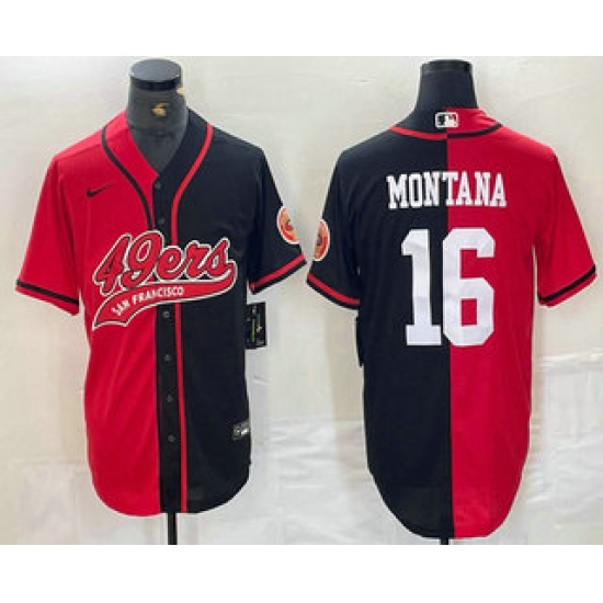 Men's San Francisco 49ers #16 Joe Montana Red Black Two Tone Cool Base Stitched Baseball Jersey