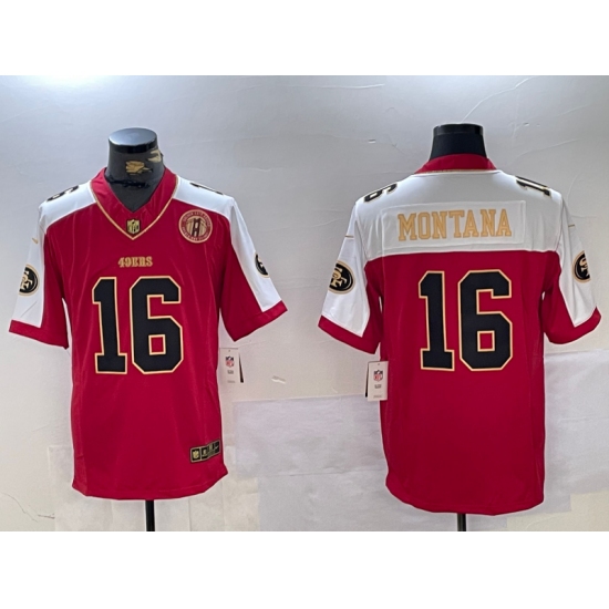 Men's San Francisco 49ers #16 Joe Montana Red Color Rush With Patch Cool Base Stitched Baseball Jersey