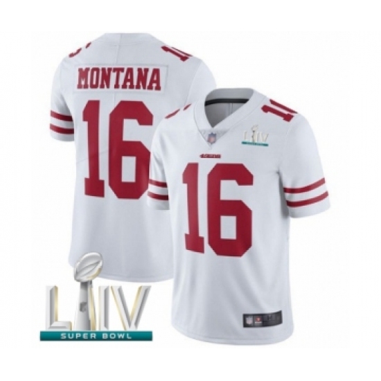 >Men's San Francisco 49ers #16 Joe Montana White Vapor Untouchable Limited Player Super Bowl LIV Bound Football Jersey
