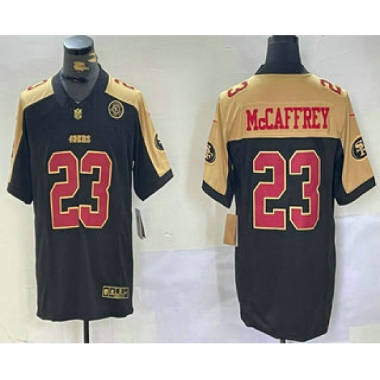 Men's San Francisco 49ers #23 Christian McCaffrey Balck Golden FUSE Vapor Limited Stitched Jersey