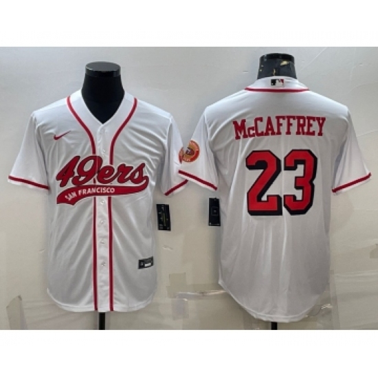 Men's San Francisco 49ers #23 Christian McCaffrey New White With Patch Cool Base Stitched Baseball Jersey