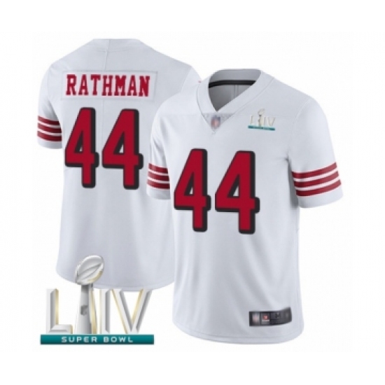 >Men's San Francisco 49ers #44 Tom Rathman Limited White Rush Vapor Untouchable Super Bowl LIV Bound Football Jersey