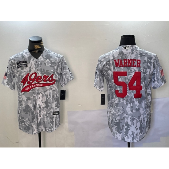 >Men's San Francisco 49ers #54 Fred Warner Arctic Camo 2024 Salute to Service Stitched Baseball Jersey