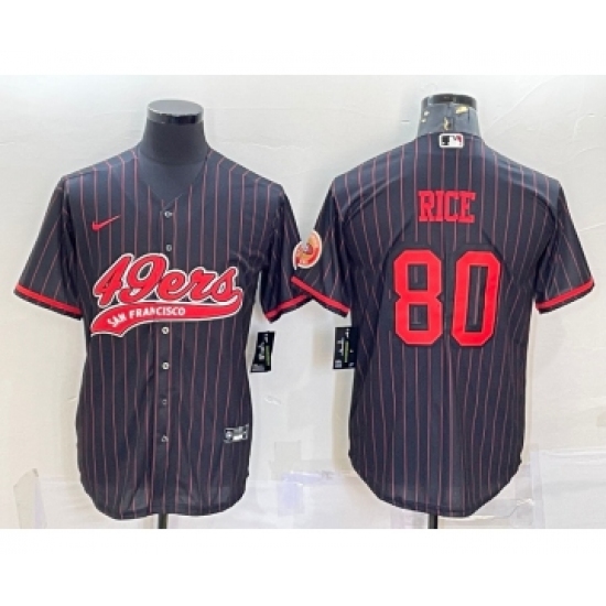 Men's San Francisco 49ers #80 Jerry Rice Black Pinstripe With Patch Cool Base Stitched Baseball Jersey