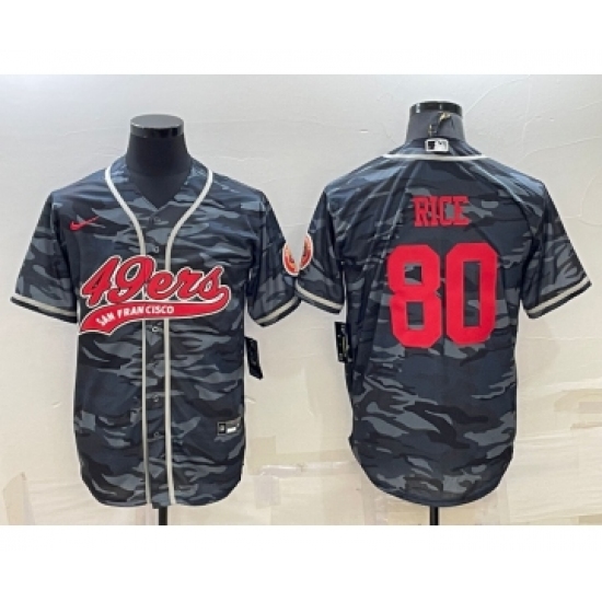 Men's San Francisco 49ers #80 Jerry Rice Grey Camo With Patch Cool Base Stitched Baseball Jersey
