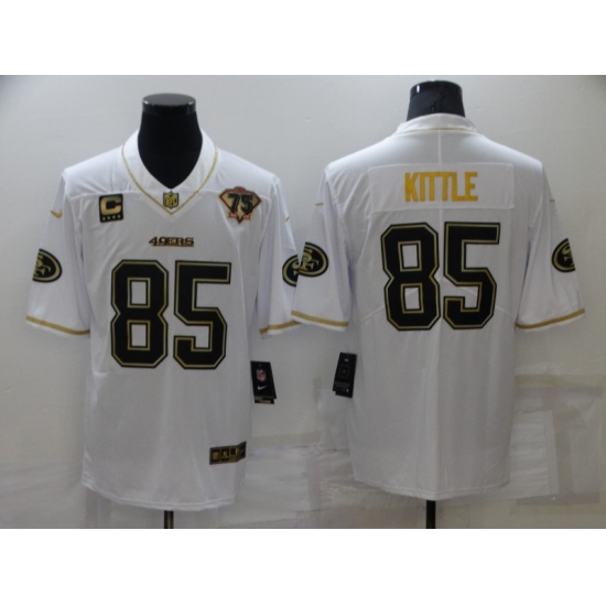 Men's San Francisco 49ers #85 George Kittle Nike White-Gold Limited Throwback Jersey