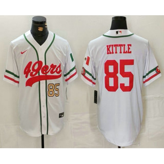 >Men's San Francisco 49ers #85 George Kittle Number White Mexico Cool Base Stitched Baseball Jersey