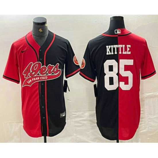 >Men's San Francisco 49ers #85 George Kittle Red Black Two Tone Cool Base Stitched Baseball Jersey