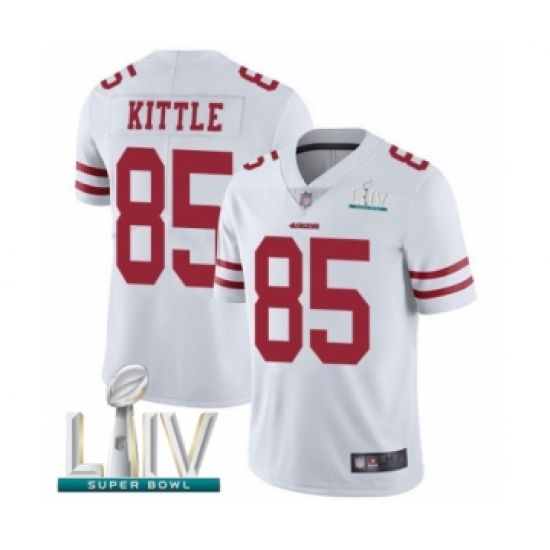 >Men's San Francisco 49ers #85 George Kittle White Vapor Untouchable Limited Player Super Bowl LIV Bound Football Jersey