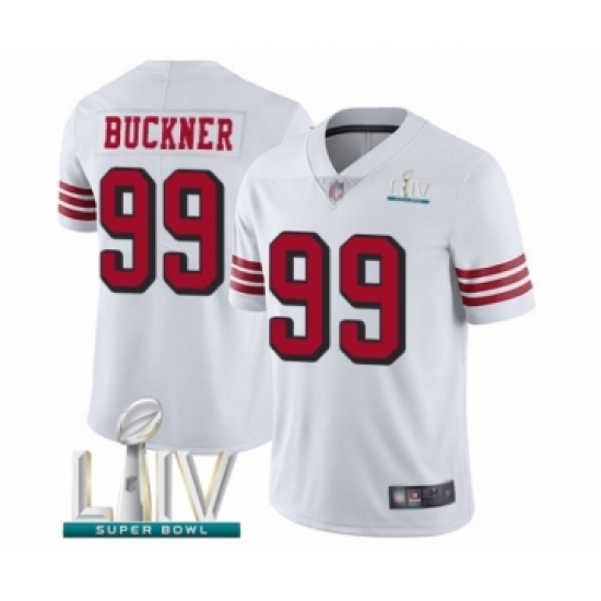 >Men's San Francisco 49ers #99 DeForest Buckner Limited White Rush Vapor Untouchable Super Bowl LIV Bound Football Jersey