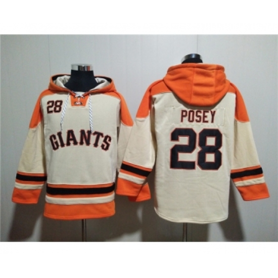 >Men's San Francisco Giants #28 Buster Posey Cream Ageless Must-Have Lace-Up Pullover Hoodie