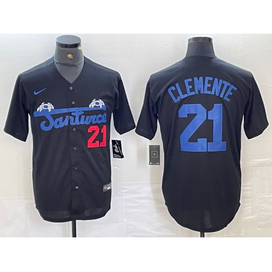 Men's Santurce Crabbers #21 Roberto Clemente Black Cool Base Stitched Baseball Jersey