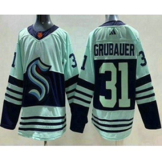 >Men's Seattle Kraken #31 Philipp Grubauer Light Green 2022 Reverse Retro Authentic Jersey