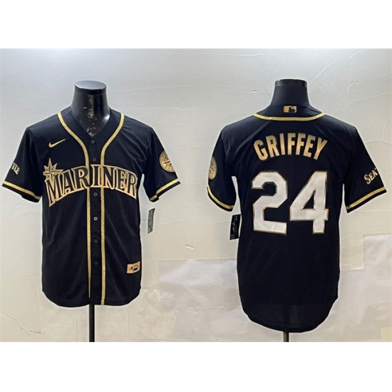 Men's Seattle Mariners #24 Ken Griffey Jr. Black Gold Cool Base Stitched Baseball Jersey