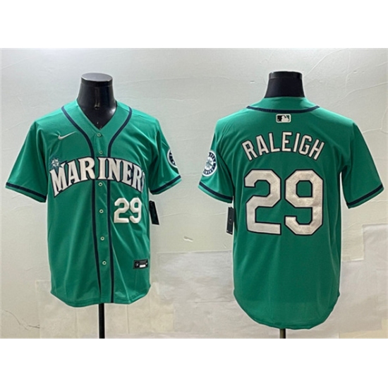 >Men's Seattle Mariners #29 Cal Raleigh Aqua Limited Stitched jersey