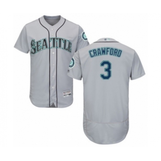 >Men's Seattle Mariners #3 J.P. Crawford Grey Road Flex Base Authentic Collection Baseball Player Jersey
