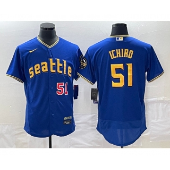 Men's Seattle Mariners #51 Ichiro Suzuki Blue 2023 City Connect Flex Base Stitched Jersey
