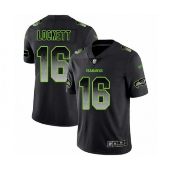 >Men's Seattle Seahawks #16 Tyler Lockett Limited Black Smoke Fashion Football Jersey