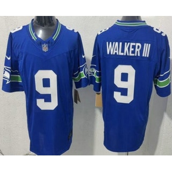 >Men's Seattle Seahawks #9 Kenneth Walker III Limited Blue FUSE Vapor Jersey