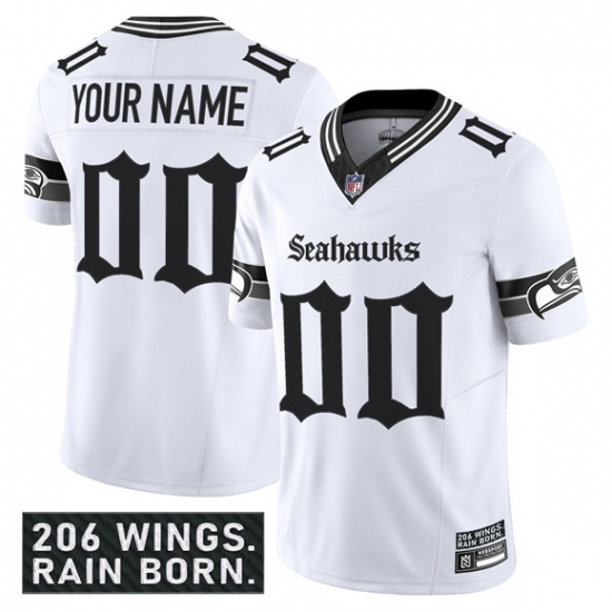 Men's Seattle Seahawks Active Player Custom White 2025 F.U.S.E. 'Gothic Rain City Shadows Edition' Vapor Limited Stitched Jersey