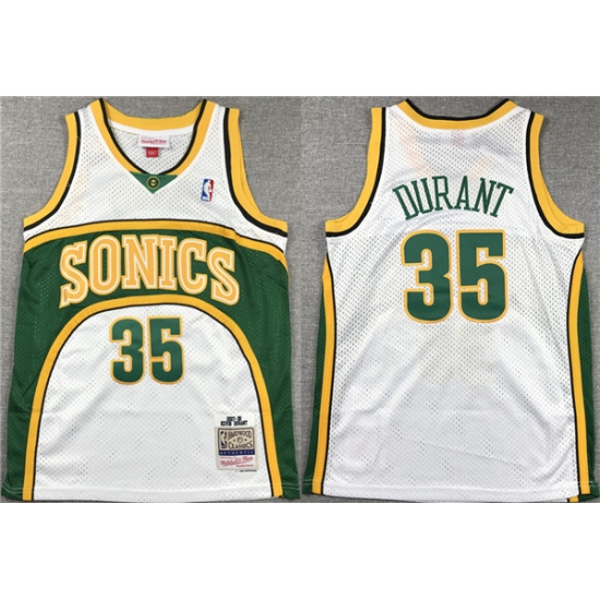 Men's Seattle SuperSonics #35 Kevin Durant White Mitchell & Ness Hardwood Classics Jersey