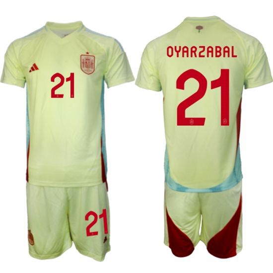 Men's Spain Team #21 Mikel Oyarzabal 2024-25 Yellow Away Soccer Jersey Suit