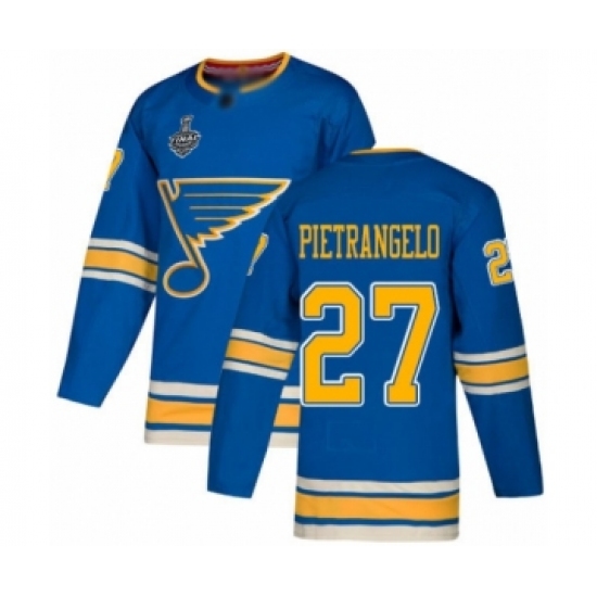 >Men's St. Louis Blues #27 Alex Pietrangelo Authentic Navy Blue Alternate 2019 Stanley Cup Final Bound Hockey Jersey