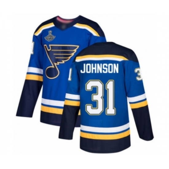 Men's St. Louis Blues #31 Chad Johnson Authentic Royal Blue Home 2019 Stanley Cup Champions Hockey Jersey