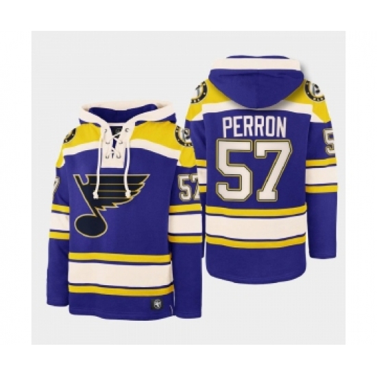 >Men's St. Louis Blues #57 David Perron Blue Ageless Must-Have Lace-Up Pullover Hoodie