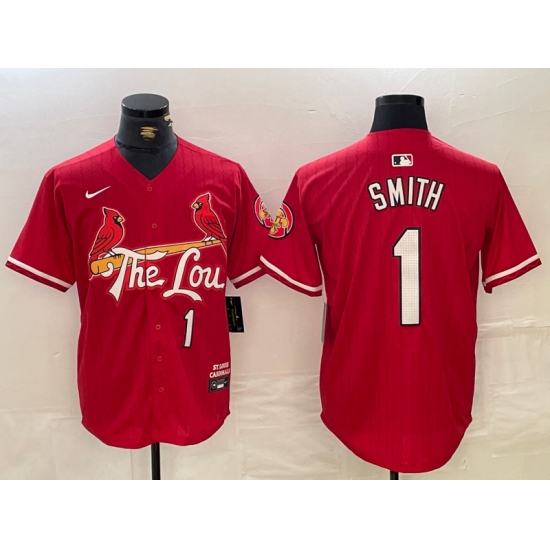 >Men's St Louis Cardinals #1 Ozzie Smith Red 2024 City Connect Limited Stitched Baseball Jersey