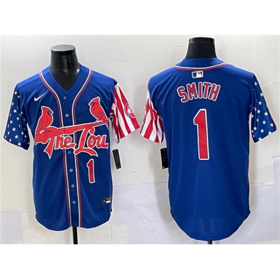>Men's St. Louis Cardinals #1 Ozzie Smith Royal Independence Day Vapor Premier Limited Stitched Baseball Jersey