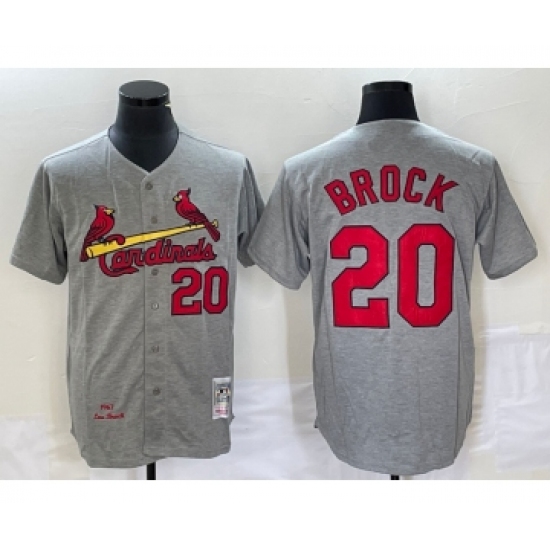 Men's Mitchell and Ness St. Louis Cardinals #20 Lou Brock Replica Grey Throwback MLB Jersey
