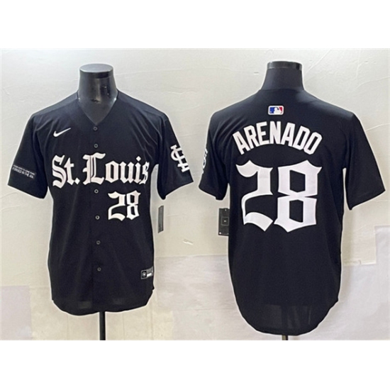 >Men's St. Louis Cardinals #28 Nolan Arenado Black 'Gothic Legacy Edition' Vapor Premier Limited Stitched Baseball Jersey