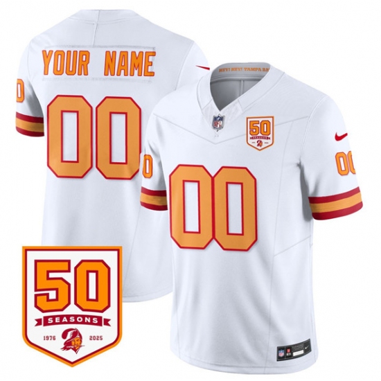 Men's Tampa Bay Buccaneers Active Player Custom White 2025 F.U.S.E. 50th Anniversary Patch Vapor Limited Football Stitched Jersey
