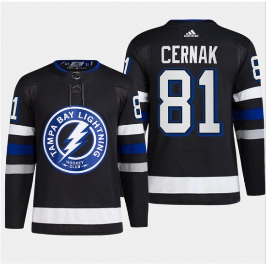 >Men's Tampa Bay Lightning #81 Erik Cernak Black 2024 Stadium Series Stitched Jersey