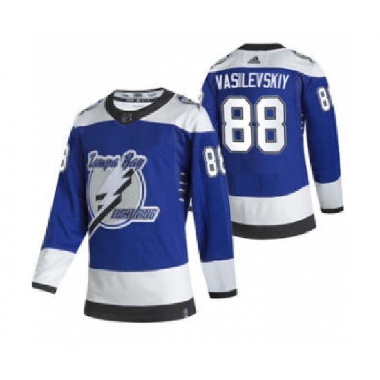 Men's Tampa Bay Lightning #88 Andrei Vasilevskiy Blue 2020-21 Reverse Retro Alternate Hockey Jersey