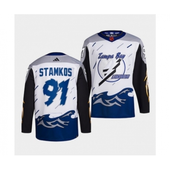 Men's Tampa Bay Lightning #91 Steven Stamkos White 2022 Reverse Retro Stitched Jersey